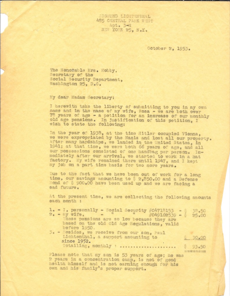 - Click on the images below to enlarge the communication between Sigmund and the Department of Social Security