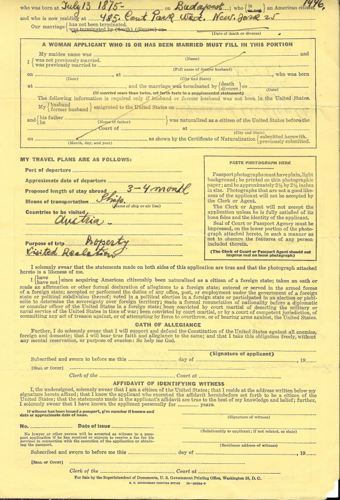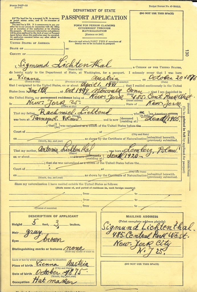 - Click on the images below to enlarge Sigmund’s application for passport. Note that he didn’t date it, as he never followed through with the application.