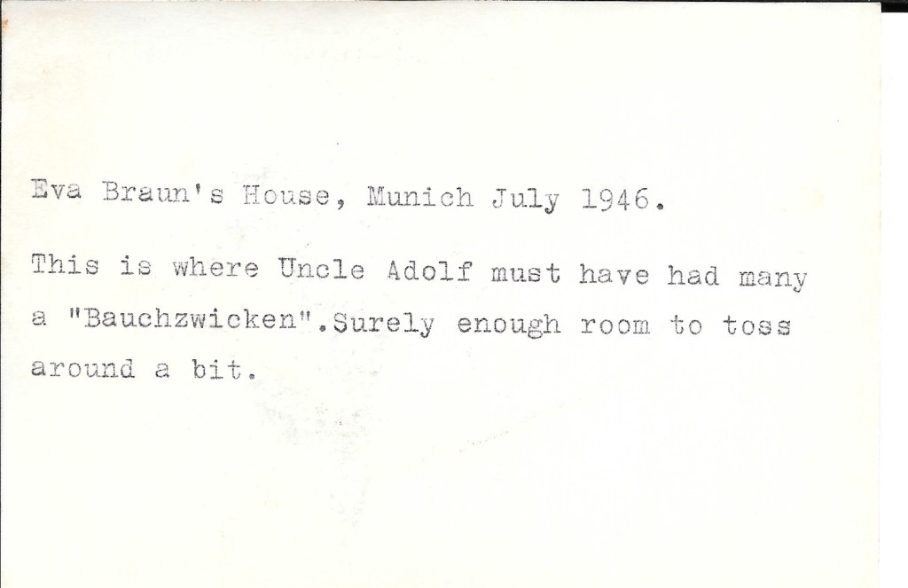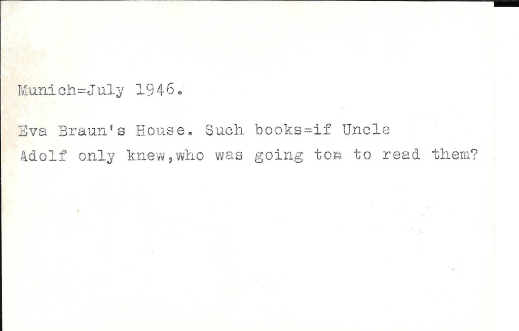 - Photos and letters sent by Emile inspired the scene in which Sophie, Doris, and Rose look at the pictures of Eva Braun’s home. The captions were typed by Emile on the back of each photo. Emile wasn’t kidding when he cautioned Doris to be careful when touching the pictures. The image below shows what happened when I attempted to clean the dusty photo with my finger. Too bad I didn’t read his letter first!!