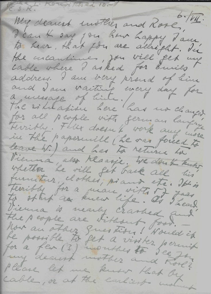 - Click image below to view the letter sent by Sigmund to the High Commissioner of the US offering the Scheibengasse house for rent