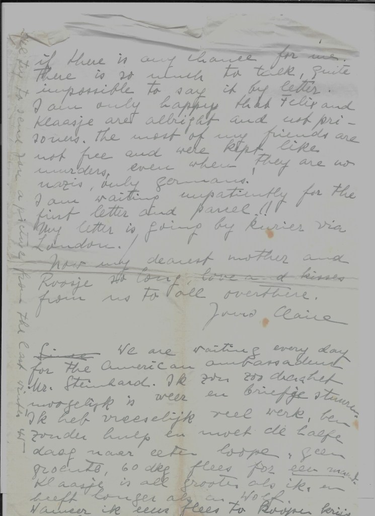 - Click on the images below to read Claire’s letter. It is partially in English, then reverts to Dutch.