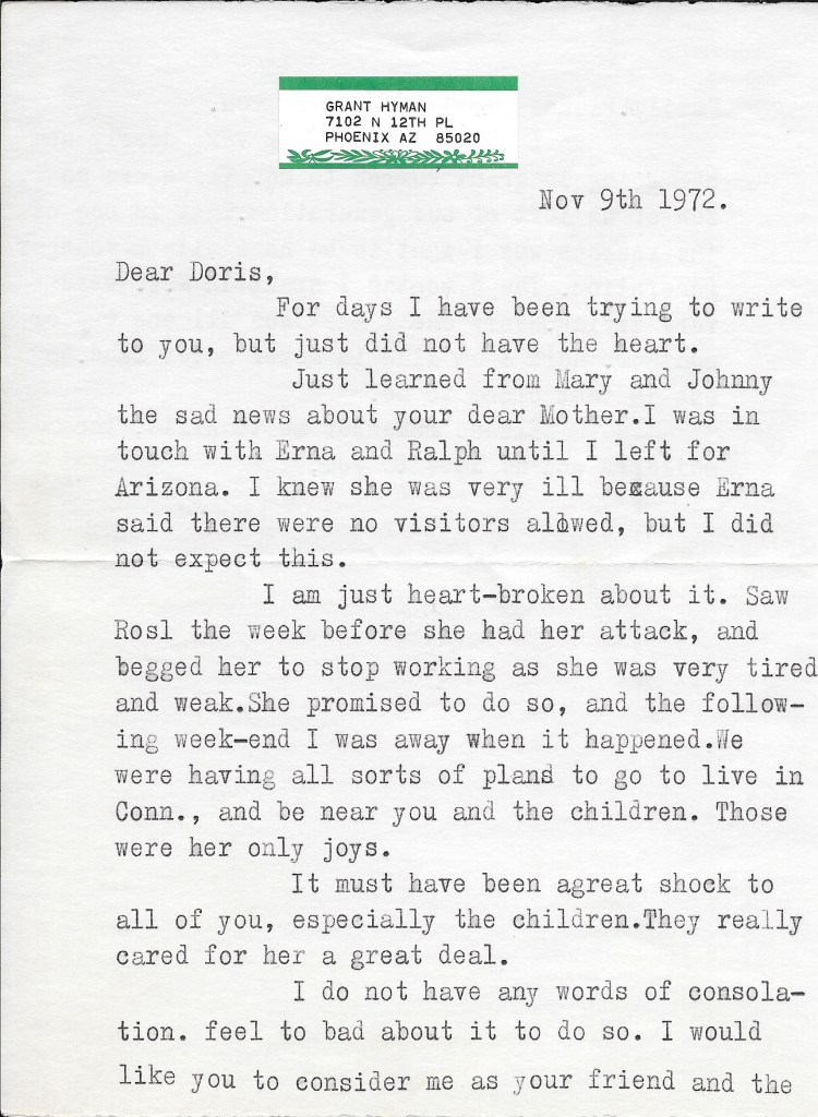- The letter below, sent by one of Rose’s closest friends after her death, gave me some insight as to what Rose was thinking at that time.