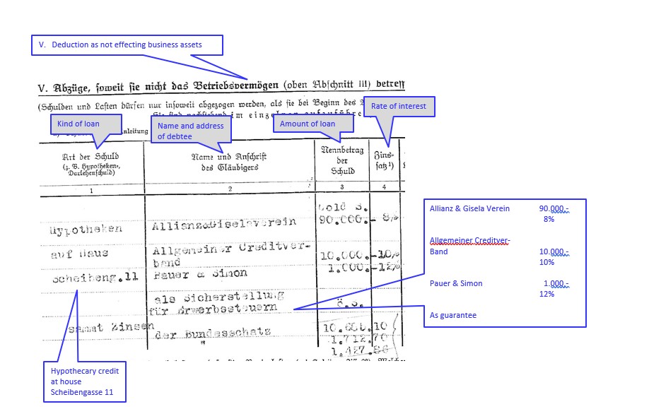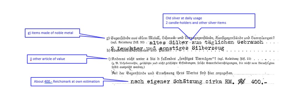 The four images below are annotated images of Sigmund’s Declaration of assets – June 30 1938. Click each image to enlarge. Annotated by Tom Nentwich.