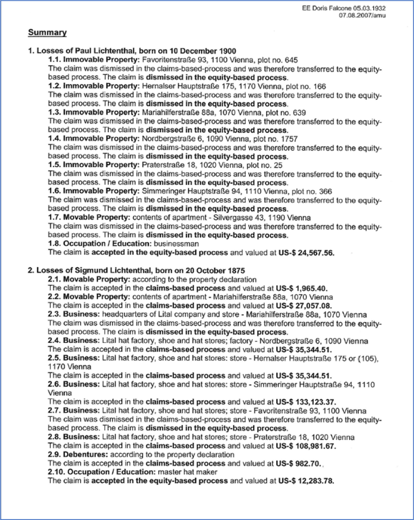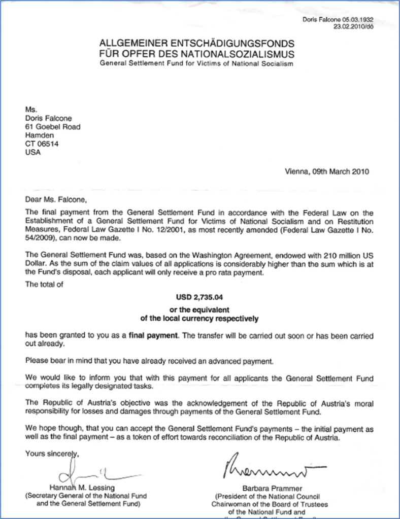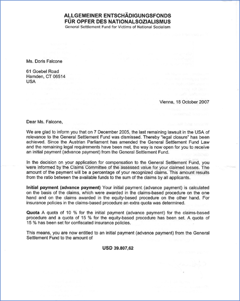 Epilogue Click on each image below to enlarge. Original letter sent to start our claim for reparations. First notice of award – August 6, 2004 Explanation of award decision – August 7, 2007 Notice of large award – October 18, 2007 Notice of final award – March 10, 2010 This chart makes it very easy to understand the difference between what we were awarded and what we received.